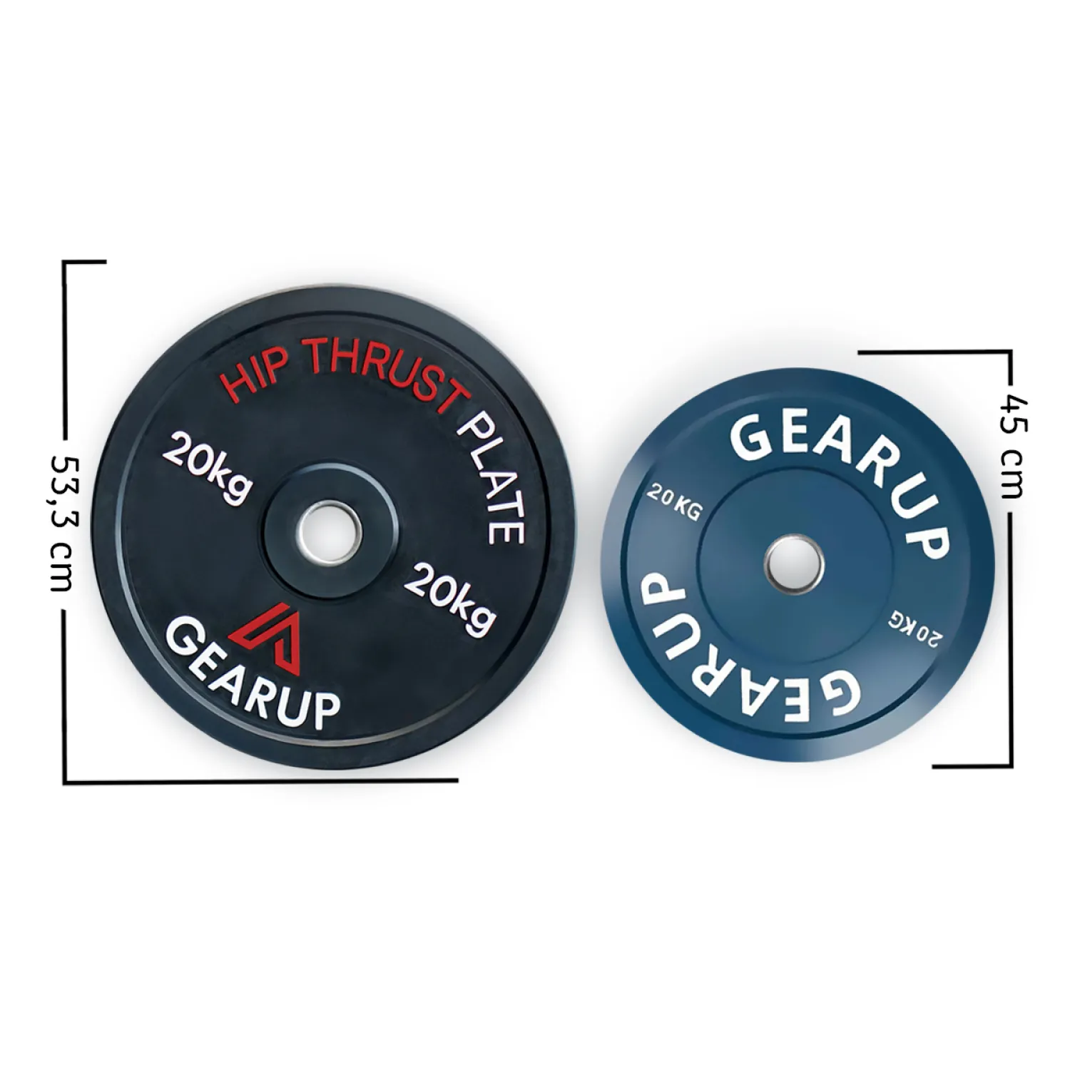 Το GearUp Hip Thrust Plate των 20kg έχει σχεδιαστεί ειδικά για να διευκολύνει την τοποθέτηση της μπάρας κατά την εκτέλεση hip thrusts, παρέχοντας μέγιστη άνεση και λειτουργικότητα στην προπόνηση. Με διάμετρο 53 εκ., το συγκεκριμένο plate είναι μεγαλύτερο από τους κλασικούς ολυμπιακών προδιαγραφών δίσκους (45 εκ.), προσφέροντας τη δυνατότητα εύκολης κύλισης της μπάρας πάνω από τα πόδια χωρίς τη χρήση βοηθητικών αντικειμένων.